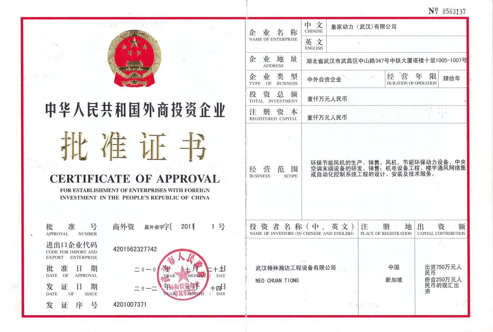 外商批準(zhǔn)證書
