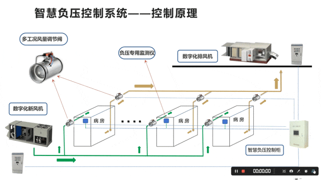按樓層設(shè)置的智慧通風(fēng)控制系統(tǒng),配備不小于10寸的人機(jī)交互觸摸顯示屏,具備BA數(shù)據(jù)接口??陕?lián)動(dòng)本層微壓差監(jiān)測(cè)儀、多工況變風(fēng)量調(diào)節(jié)閥、EC直流無(wú)刷新風(fēng)空調(diào)機(jī)、平疫轉(zhuǎn)換凈化風(fēng)機(jī)箱。集中監(jiān)控本層各房間的空氣壓力梯度、新風(fēng)量、排風(fēng)量、空調(diào)通風(fēng)機(jī)組運(yùn)行情況等。